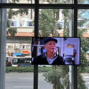 展覽中有在播放攝影師阮義忠的口述影音,蠻喜歡他提到對攝影的想法會是攝影與人、人生、生活的連結大於藝術,他的第一台相機拍攝的第一組照片是他的家鄉宜蘭頭城,用相機、底片將當時頭城的人與景物記錄下來,他也以文字來述說相片中無法看出的故事,有一張照片是拍一個人躺在溜滑梯或水管裡頭睡覺,只露出雙腳,他紀錄下這個畫面,爾後知道那個人是附近居民熟知的街友,在那刻街友躺在裡頭睡覺,也擁有屬於自己寧靜的時間,他在《人間》有個自己的專欄,除了照片也會以幾百字的文字來述說照片背後的故事。